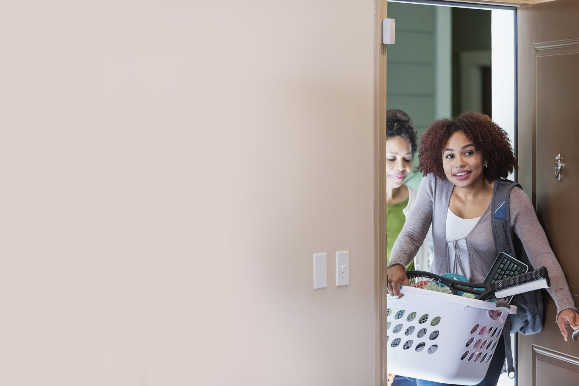 Young woman with mother, moving into apartment